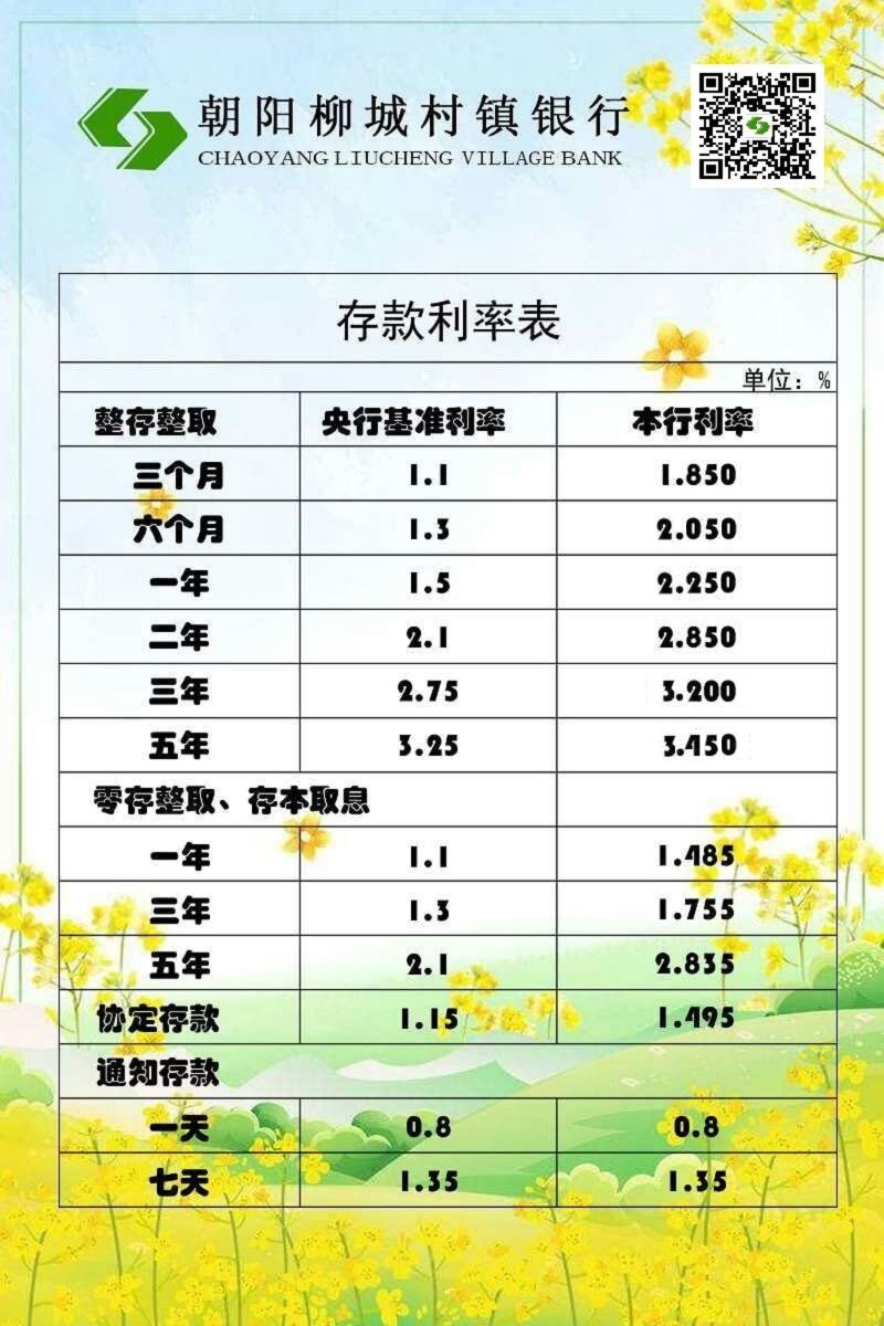朝陽柳城村鎮(zhèn)銀行利率調(diào)整公告