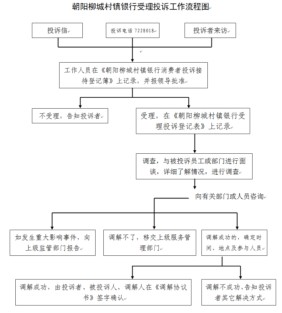 朝陽柳城村鎮(zhèn)銀行受理投訴工作流程