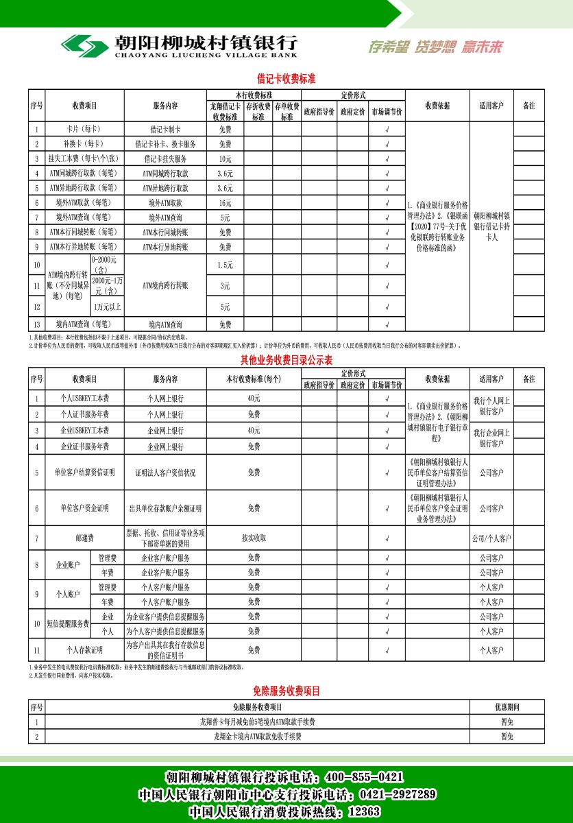 關于企業(yè)賬戶服務標準、資費標準、辦理時限及投訴渠道的公告