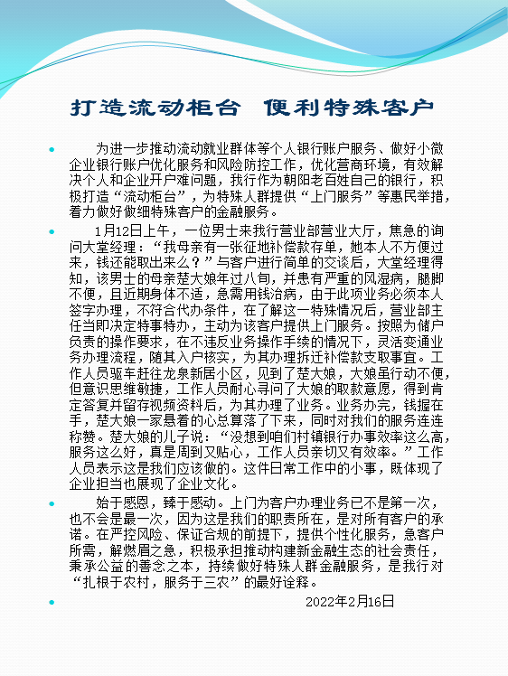 打造流動(dòng)柜臺(tái) 便利特殊客戶